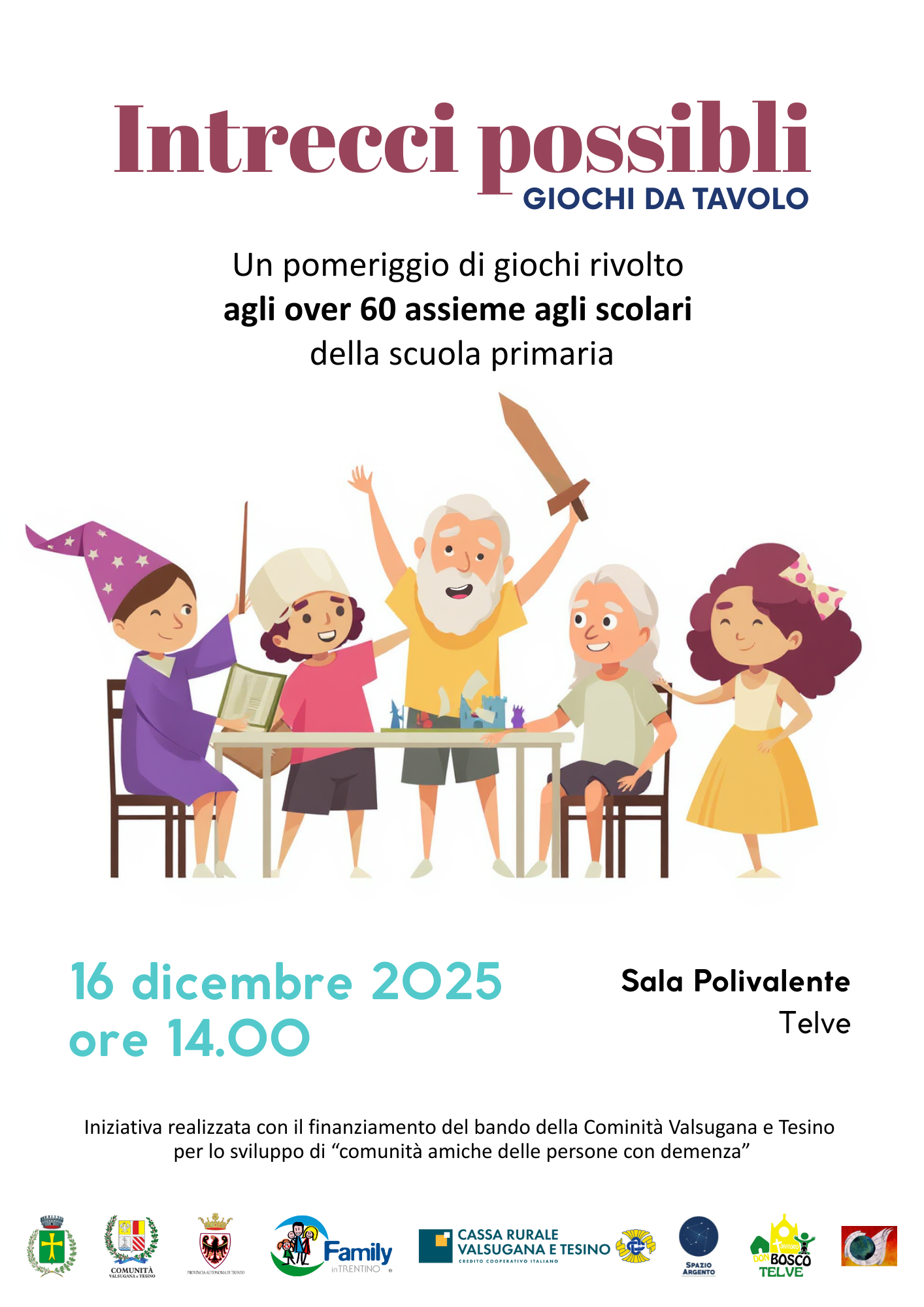 Ulteriori informazioni Iniziativa realizzata con il finanziamento del Bando della Comunità Valsugana e Tesino per lo sviluppo di "comunità amiche delle persone con demenza" Ultimo aggiornamento: 11/12/2025 11:07