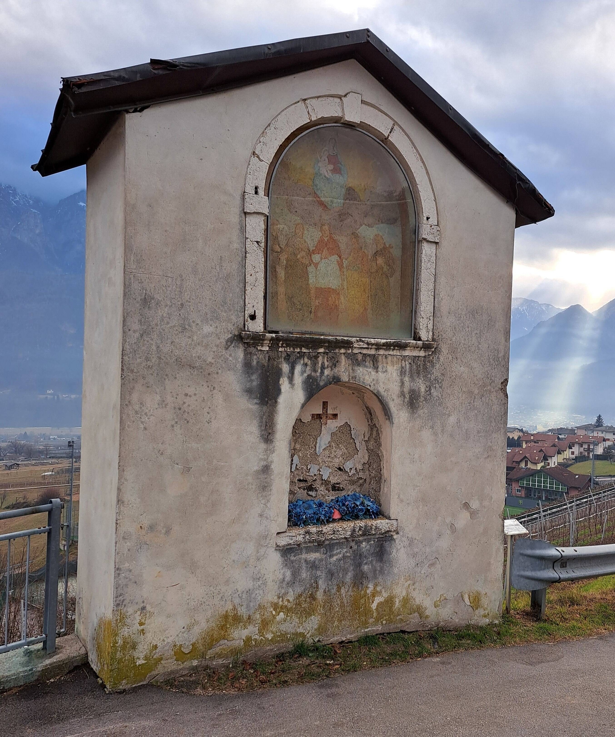 Capitello dei Tromboni(n°4 in mappa) detto anche del maso Maso Paradiso(perché in passato si trovava in prossimità di questo maso). Fu costruito nel XVII° secolo, in aperta campagna; ora invece con l’espandersi del paese si trova all’interno dell’abitato, nella piazzetta fra via Aurora e Paradiso. Sembra che il suo nome derivi da uno “storpiamento” del nome tedesco di un capitano tedesco che nel 1460 era alle dipendenze di Francesco III° di Castellato(Ferrai-1969).