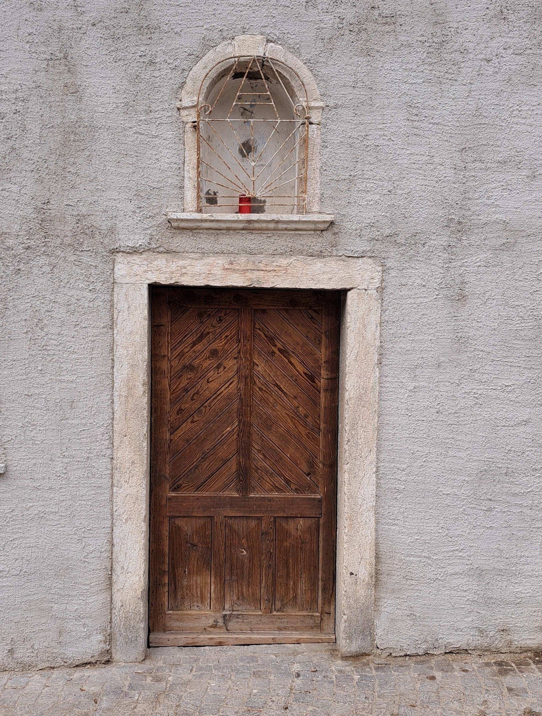 La nicchia inferiore invece è vuota e in stato di degrado. Sul retro del Capitello è raffigurata una grande croce con gli strumenti della passione dei quali sono rimaste sola la lancia e la canna con la spugna.
